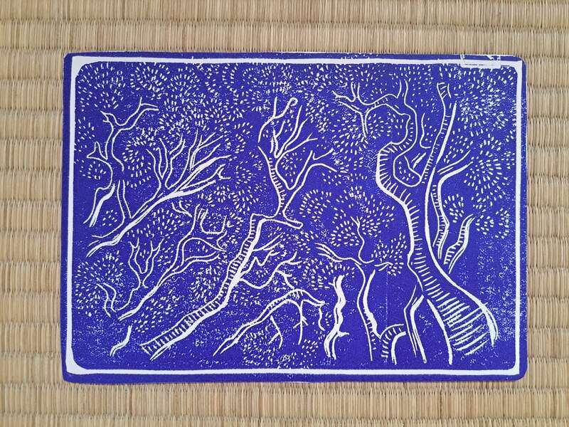 Estampe originale réalisée à partir d’une linogravure, numérotée et pressée manuellement (presse japonaise)